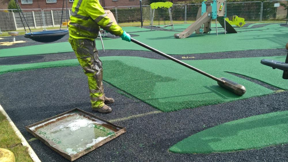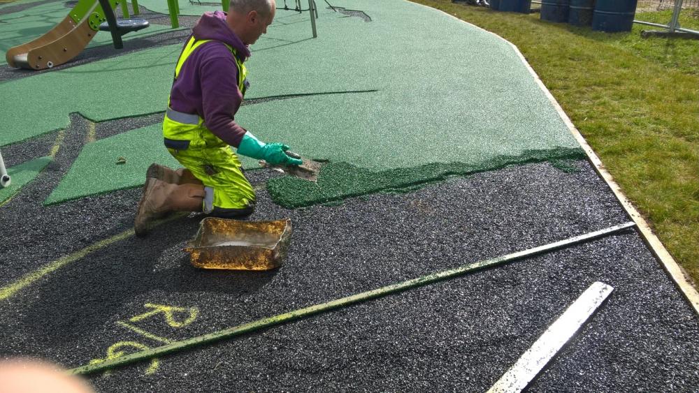 Undercoat tarmac before soft colour went on top