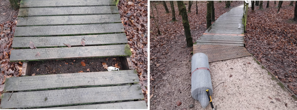 The team carried out safety work on the Millennium Green on paths. Here are some photos of where the caretakers have taken our broken boards on the boardwalks to replace with new ones and cover with non-slip mesh.